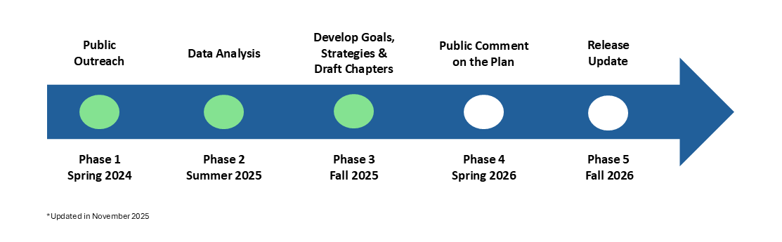 The projected timeline for the upcoming 2026 update is below. Public outreach efforts will start in Spring 2024.