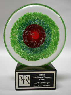 Vision North Texas and North Texas 2050 received the 2011 National Planning Excellence Award for Innovation in Sustaining Places from the American Planning Association (APA), the "Long Range Planning Award" from the Texas Chapter of the APA in 2005 and 2010, and numerous other recognitions from other agencies including the Greater Dallas Planning Council and the American Institute of Architects.